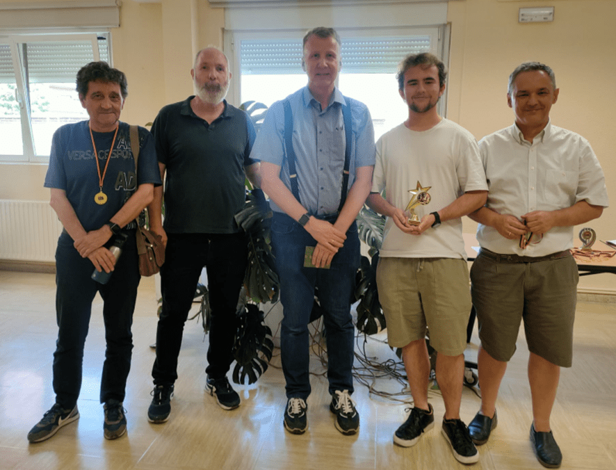 De hecho, hubo 2 personas que consiguieron ganarle, Juan R. C. jugador del barrio que no pertenece a nuestro club y que vino con su padre Francisco R. A. (que también hizo una excelente partida por lo que fue premiado) y nuestro querido socio Enrique I. G. gran jugador que durante muchos años ha estado participando en encuentros de ajedrez en todas las categorías de la liga por equipos de Madrid sin olvidar una mención especial a nuestro jugador de primera Gerardo de la C. F. que lleva siendo socio desde el año 76 y que consiguió unas merecidas tablas con nuestro maestro internacional.